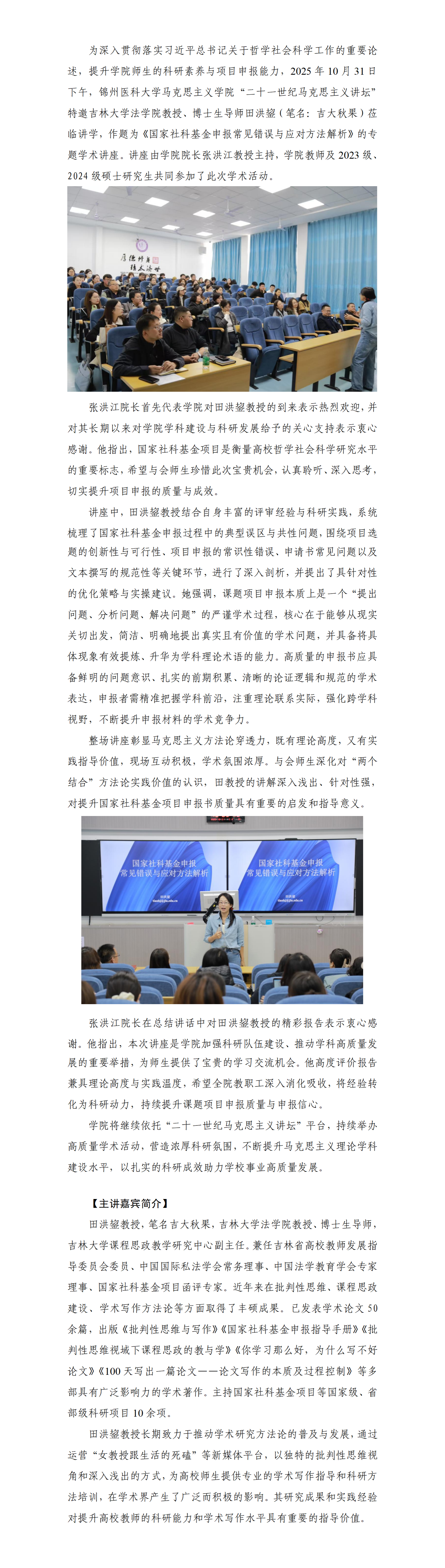 深化科研赋能 筑牢学科根基:锦州医科大学马克思主义学院成功举办“二十一世纪马克思主义讲坛”——国家社科基金申报专题学术讲座