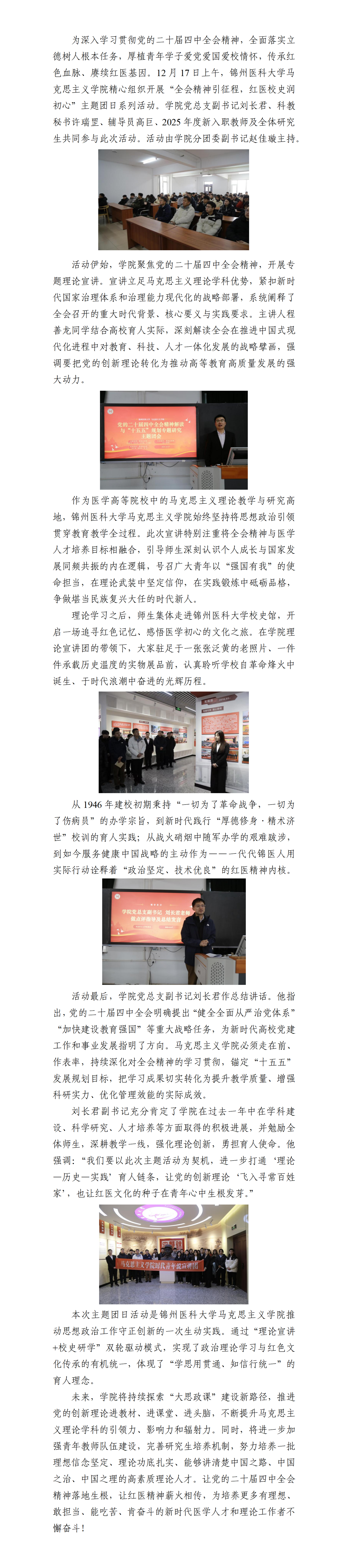 全会精神引征程 红医校史润初心——锦州医科大学马克思主义学院开展主题团日系列活动