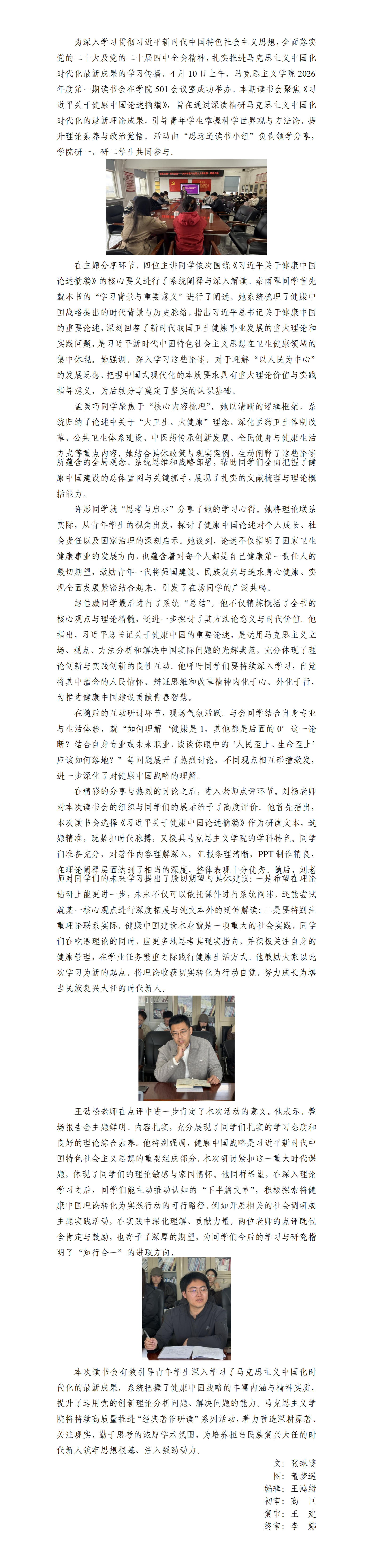 经典引领·时代担当——马克思主义学院2026年度第一期读书会成功举办