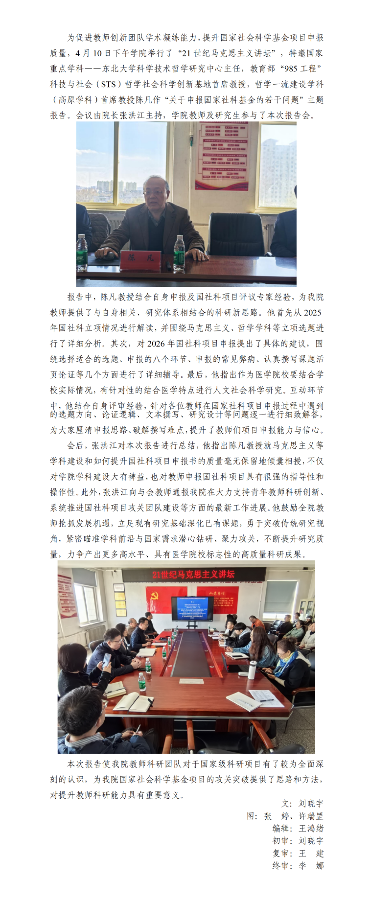 东北大学陈凡教授应邀做客我院“21 世纪马克思主义讲坛”